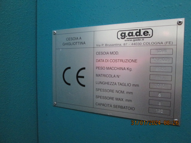 Cesoia idraulica G.A.D.E. modello CO 30/6 3050x6/8 2005